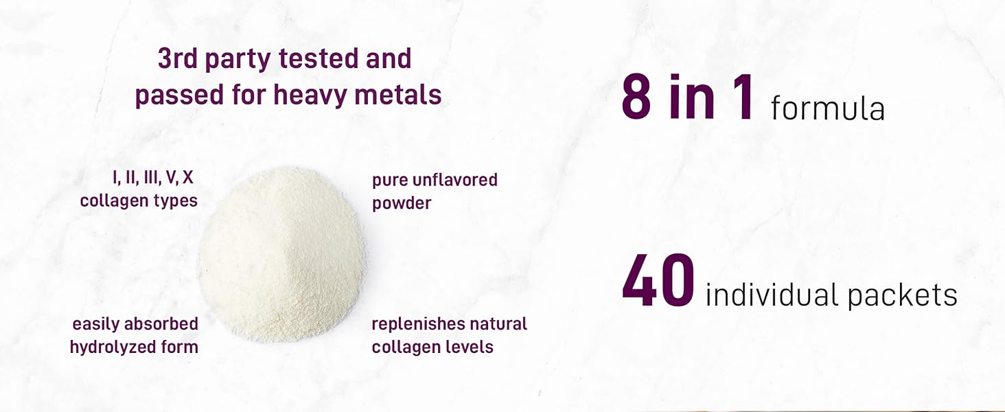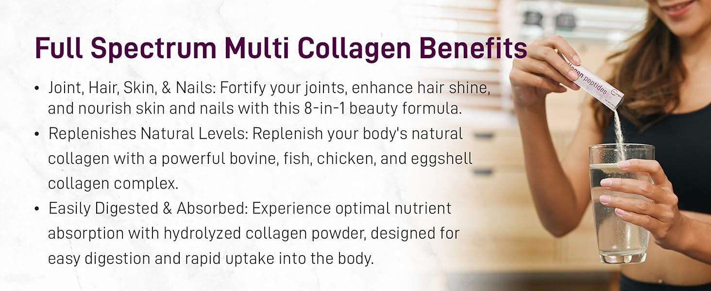 - VitaCore 八合一全谱水解胶原蛋白肽包。这款终极便携抗衰老复合物每包含高达 11 克纯牧场饲养胶原蛋白肽。采用优质水解胶原蛋白,可完全高效吸收,滋养头发、皮肤、指甲和关节。