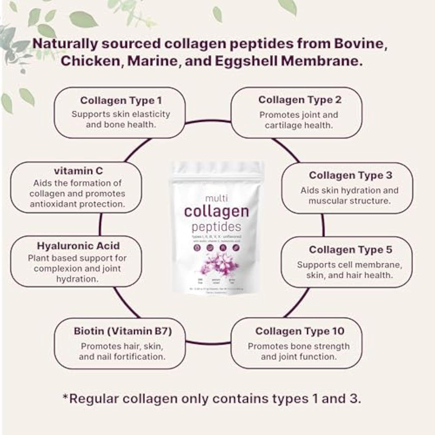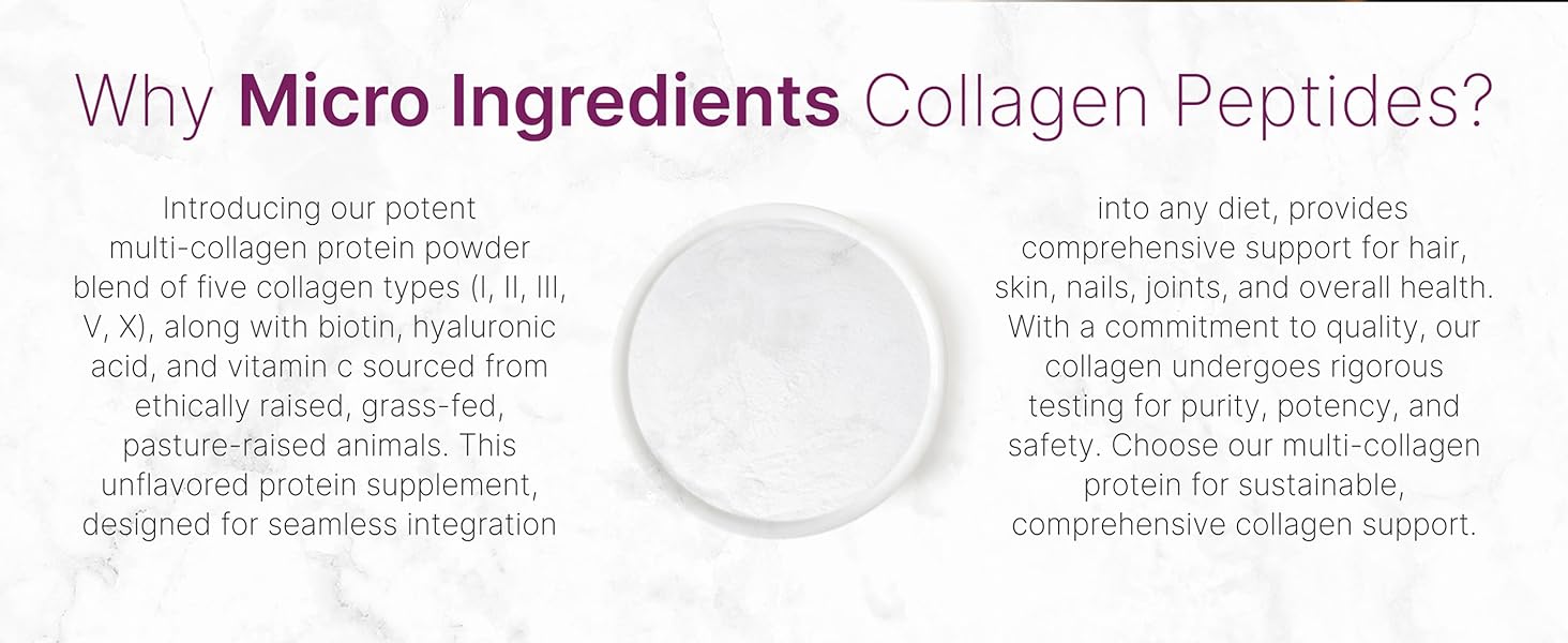 - 一种强效无味多胶原蛋白复合物,提供最基本的胶原蛋白类型,包括 I、II、III、V 和 X 型。将其混合到您喜欢的任何饮料中,并为您的身体补充来自天然来源(包括牛、鸡、海洋和蛋壳膜)的顶级胶原蛋白。