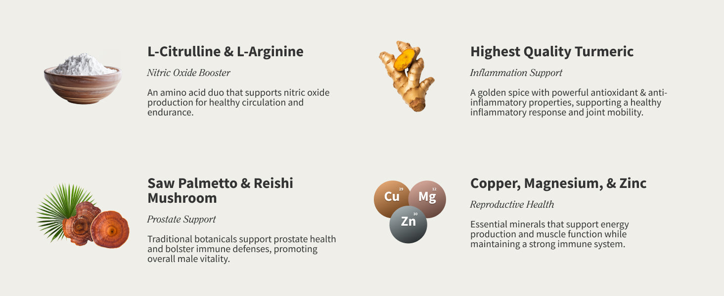 - Nitric Oxide Booster Supplement features L-Arginine, L-Citrulline, and Ginseng Root.