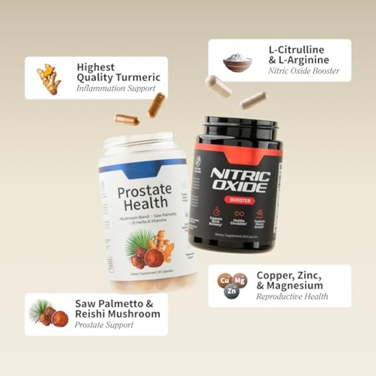 Prostate Health Support Supplement Bundle with Nitric Oxide Booster – 90 Capsules & 60 Capsules